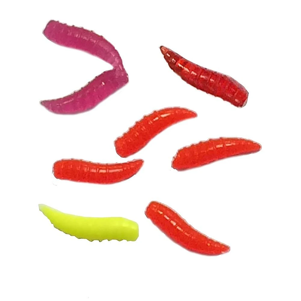 Ze bewegen niet maar zijn gemaakt van zacht sileconen. In diverse kleuren verkrijgbaar, in combinatie met levende maden niet van echt te onderscheiden.