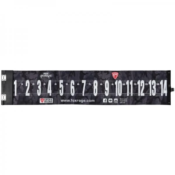 Deze mag niet ontbreken aan je visuitrusting meet het formaat van je vangst accuraat en in stijl. De onthaakmat / meetmat is geschikt voor vissen tot 1.40 meter telken smet stappen van een centimeter. Gemaakt van een slijtvast en visvriendelijk materiaal en voorzien van de Fox Rage unieke Camo print. De mat is gemakkelijk op te bergen in de bijbehorende tas.