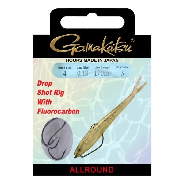 Dropshot onderlijnen gemaakt met de populaire haken van gemakatsu. Deze onderlijnen 170cm lang en zijn gemaakt met de Worm 39 haak. Verkrijgbaar in 4 maten. Verpakt per 3 stuks.
