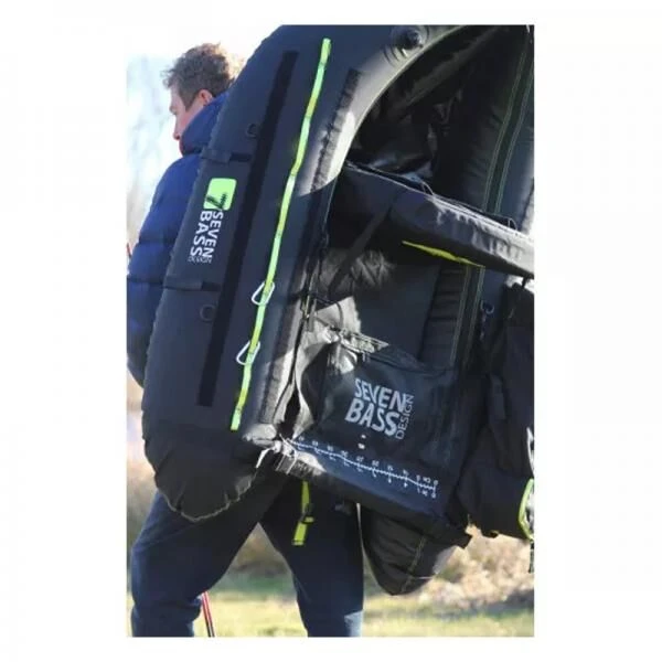 Het heeft een schuimrubberen zitting en rugleuning. Comfortabel zittend boven het waterniveau zult je genieten van je visfeesten. Twee verstelbare banden passen de helling van de rugleuning aan aan alle morfologieën. De zeer uitgesproken V-vorm vermindert de waterweerstand bij het oprukken en verbetert de wendbaarheid van de vlotterbuis aanzienlijk. Deze “V’s” bestaan uit onafhankelijke luchtkamers die zijn uitgerust met veiligheidskleppen en individueel worden opgeblazen voor maximale veiligheid. Het gehele watercontactvlak is gemaakt van zeer dik PVC-weefsel voor een betere glijwerking. De visser profiteert van een opbergruimte achter de zitting die perfect plaats biedt aan een waterdichte tas.
